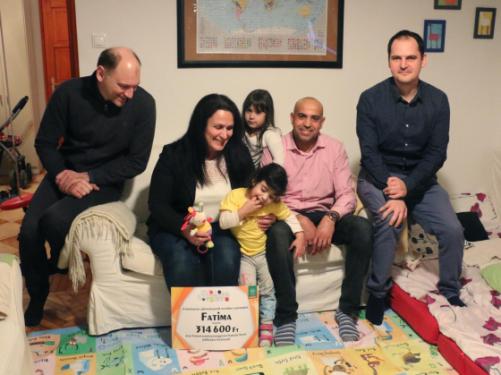 Szász József alpolgármester és Vass Pál, a Környezet-és Klímavédelmi Bizottság tagja, a kezdeményezés ötletgazdája adták át közösen Fatima szüleinek a kupakgyűjtésből befolyt 314.600 forintot.