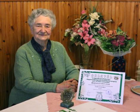 – Két alkalommal is kijöttek az Önkormányzattól, sok fotót készítettek, majd vártam az értesítést. Nemsokára jött is a papír, csakhogy nem a kerülettől, hanem az országos pályázat szervezőitől. Akkor még nem is tudtam, hogy lakóhelyünkön én lettem az első. Kiderült, hogy miután a kertvárosi zsűri nyertesnek nyilvánított, neveztek az országos versenyre is, ahol a helyi pályázatok győztesei vehettek részt. Ezek után a Kertvárosi Vigasságok második napján a kerületi első helyért járó oklevelet vehettem át Szász József alpolgármestertől, másnap pedig az Országos Mezőgazdasági Kiállítás és Vásáron oklevelet és bronzszobrocskát kaptam, mint az ország egyik legszebb konyhakertjének tulajdonosa.
