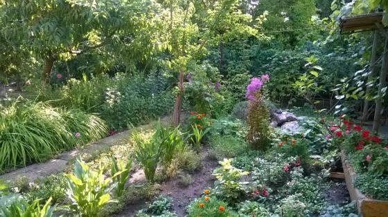 – Csupa olyasmit, amivel sok munka volt. Jelentős részét szőlősorok foglalták el, ezt a férjem akarta így. Mellette azonban jól megfért a konyhakert is. Nekünk akkor semmiért nem kellett a boltba menni, teljesen önellátók voltunk. A hasznosságán kívül pedig nekem ez volt, és ma is ez az egyik legfontosabb örömforrás. Gyönyörködöm benne, és törekszem arra, hogy ne csak hasznos legyen, hanem szép is. Ezért a konyhakerten kívül sok virágot is ültetek, így tavasztól késő őszig csupa szín minden.