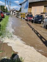 Csőtörés miatt víz árasztotta el a Szabadföld utat a Cinke és a Tóköz utcák közötti szakaszon 2020.07.07.