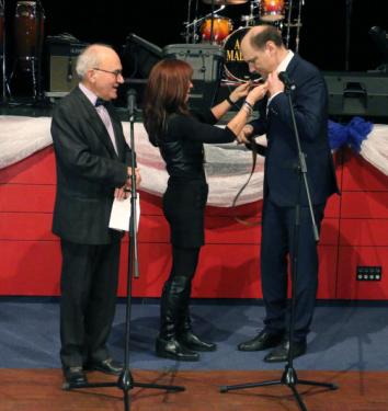 A hagyományoknak megfelelően a 21. pedagógusbálon is Varga György, a Rácz Aladár Zeneiskola nyugalmazott igazgatója köszöntötte kerületünk oktatási intézményeinek dolgozóit, ezúttal azonban utoljára. A köztiszteletnek örvendő zenepedagógus úgy döntött, hogy a csúcson kell abbahagyni, és a pedagógusbál ceremóniamesteri feladatait ünnepélyes, de sok nevetéssel kísért aktus keretében átruházta Szász József alpolgármesterre azzal a feltétellel, hogy műsort vezetni csak csokornyakkendőben lehet. Kis zavart okozott, hogy az újdonsült ceremóniamester nyakát nem csokornyakkendő díszítette. Ám szerencsére – nyilván teljesen véletlenül – lázas keresgélés után a zakója belső zsebében talált egy csokornyakkendőt, így minden akadály elhárul hivatalba lépése elől.
