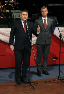 Szatmáry Kristóf országgyűlési képviselő hasonlóan oldott hangulatban folytatta a megjelentek köszöntését, és azt a vízióját vetítette előre, amikor majd 2040-ben Szász József adja át a ceremóniamesteri megbízatást az ő utódjának, amivel azt is üzente, hogy ha a pedagógusbál túlélte az első két évtizedet, akkor most már az idők végezetéig része lesz a farsangi programoknak.