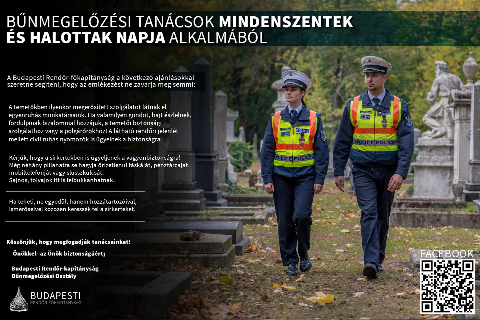 A temetőkben ilyenkor megerősített szolgálatot látnak el egyenruhás munkatársaink. Ha valamilyen gondot, bajt észlelnek, forduljanak bizalommal hozzájuk, a temetői biztonsági szolgálathoz vagy a polgárőrökhöz! A látható rendőri jelenlét mellett civil ruhás nyomozók is ügyelnek a biztonságra.