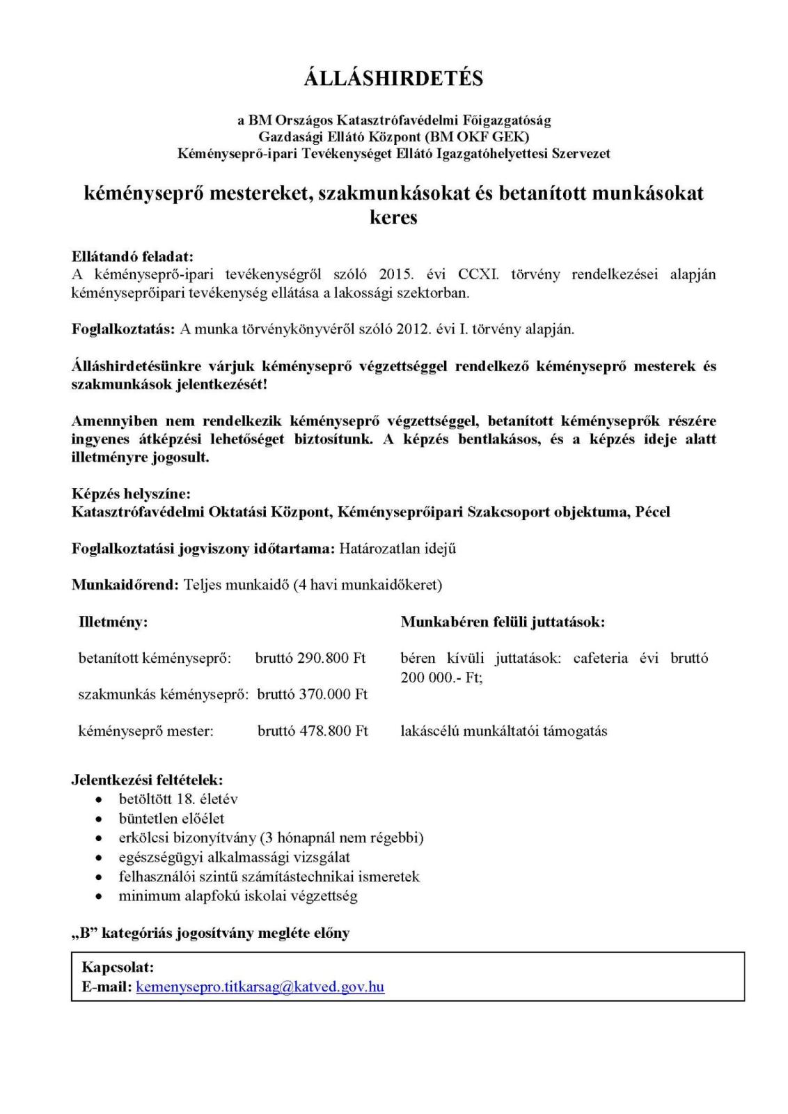 betanított kéményseprő: bruttó 290.800 Ft