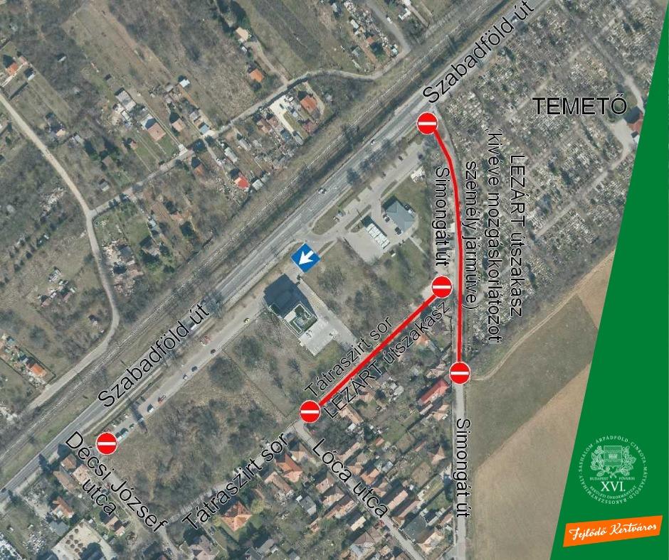 - lezárásra kerül a Tátraszirt sor a Lóca utca és a temető között