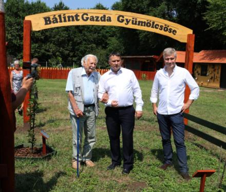 A köszöntés részeként egy különleges ajándékkal lepte meg kerületünk vezetője hazánk legismertebb kertészét, még pedig a Rákosmenti Mezei Őrszolgálat székhelyén kialakított Tanya udvar gyümölcsös kertje tegnapi naptól fogba Bálint gazda Gyümölcsöse nevet viseli. A jövőben minden érdeklődő megtanulhatja Bálint Gyuri bácsi által szorgalmazott karcsú orsó metszési módszert, melynek segítségével a gyümölcsfák gyermekek és idősek számára is gondozhatóvá alakíthatók.