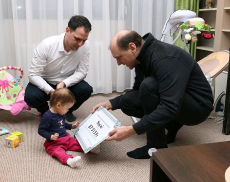 Szász József alpolgármester és Vass Pál, a halmozott egészségügyi problémákkal született Noémi szüleinek adta át a legutóbbi kupakgyűjtésből összegyűlt 87 315 forintot.