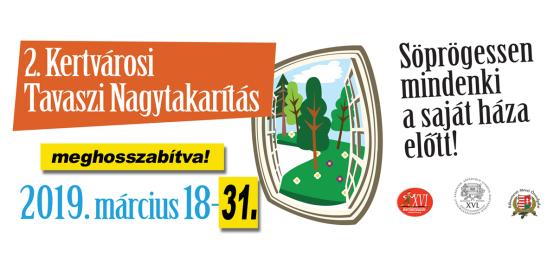 Március 18-án kezdődik a 2. Kertvárosi Tavaszi Nagytakarítás. Csatlakozzanak hozzánk és szépítsük meg együtt kerületünket! Seperjen a háza előtt, ezzel nemcsak környezetünk nyer, hanem akár Ön is. Jelentkezésül küldje el nevét, lakcímét és telefonszámát a kabinet@bp16.hu e-mail címre.