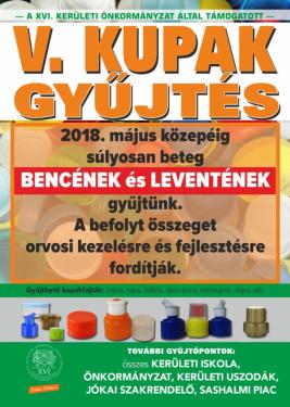 Elindult az V. Kupakgyűjtési akció, 2018. május végéig Bencének és Leventének gyűjtünk!