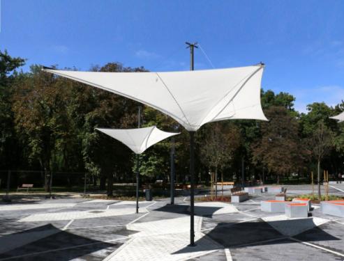 A közel 200 millió forintos beruházás lehetővé tette, hogy ezentúl 2684 négyzetméter antracit díszburkolaton, 54 négyzetméter bazalt zúzottkő burkolaton, és a füves felületeket átszelő, 150 négyzetméter összterületű, betonlapokból álló „tipegőn” lépkedjünk. Tíz betonakna, két hordalékfogó akna és 100 köbméternél is nagyobb szikkasztó blokk gondoskodik a jövőben a csapadékvíz elvezetéséről. A közvilágítást 10 világítóoszlop szolgáltatja, az új gyepfelületet 3400 méter csepegtetőcső látja el vízzel. Újak a tér kiszolgáló berendezései, a kerékpártárolók, a nagyméretű támlás padok, és a szeméttárolók is, a nyári nap perzselő sugarai ellen pedig formatervezett napvitorlák védik a liget látogatóit.