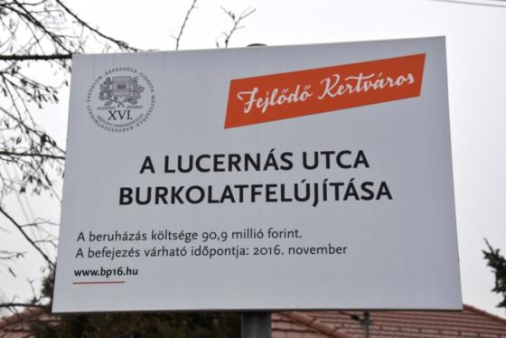 A Lucernás utca az Ostoros út és Csobaj utca közötti szakaszon 475 méter hosszon megújult a pályaszerkezet, 764 méteren pedig a járda. Kiépültek a házakhoz tartozó kapubehajtók valamint a csapadékvíz-elvezető csatorna is. És nem utolsó sorban kicseréltettük a vízgerinc vezetéket az Ostoros utca és Locsoló utca közötti szakaszon.