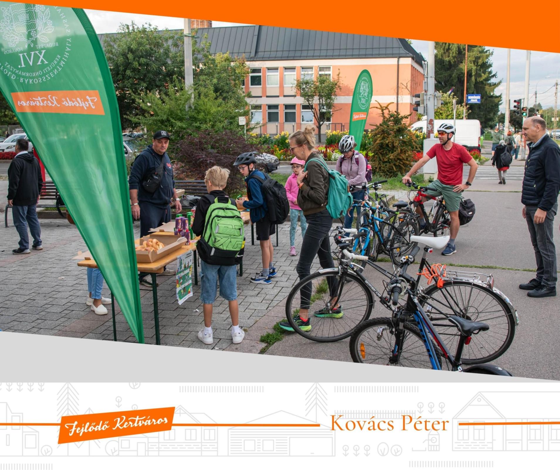 Némi pereccel és egy friss üdítővel vártuk a munkába biciklizőket a már szokásosnak mondható bringás reggelin a Jókai utcánál.
