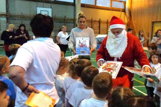 Az ifjú sportolókat meglátogatta a Mikulás, aki csokoládéval kedveskedett a megfáradt gyerekeknek, akiknek biztosan jólesett egy kis kalória a testmozgás után.