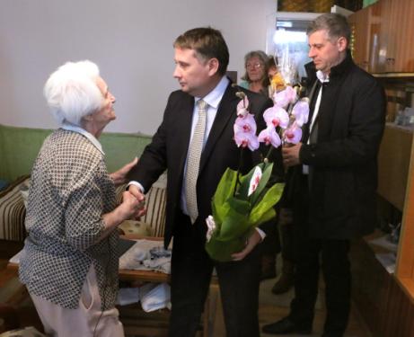 Kovács Péter polgármester öt évvel ezelőtt megígérte, hogy 95. születésnapján is felköszönti Babus Béla Zsigmondnét. Az ünnepségre Szatmáry Kristóf országgyűlési képviselő is elkísérte.