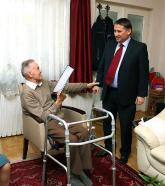 Minden bizonnyal kerületünk legvidámabb 90 éves lakóját köszöntötte Kovács Péter polgármester Bessenyei Lajos személyében október 18-án.