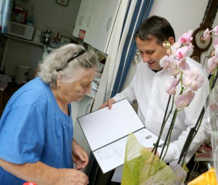 Kovács Péter polgármester köszöntötte a 90. születésnapját ünneplő Illés Ferencnét. Etelka néni a Szolnok megyei Tiszakürtön született. Ott telt a gyermekkora, és az iskola elvégzése után ott kezdett dolgozni a mezőgazdaságban. 1948-ban férjhez ment, és 1949-ben megszületett első fiúgyermekük. Mivel a családfő Budapesten dolgozott, 1950-ben a fővárosba költöztek. Itt még egy fiúval és egy lánnyal bővült a család.