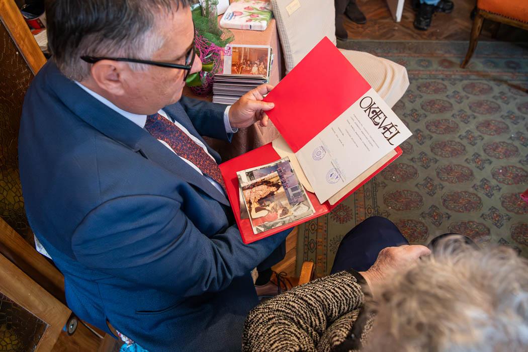 Sinka Sándornét kilencvenedik születésnapja alkalmából köszöntöttem otthonában és adtam át a kerület nevében is jókívánságaimat, valamint miniszterelnök úr üdvözlő oklevelét. Marika Jászberényben látta meg a napvilágot, egész gyermekkorát ott töltötte, az érettségi megszerzését követően pedig gyermekápolóként végzett. A Jászság fővárosában találkoztak későbbi férjével is, aki akkor már Budapesten dolgozott, így a frigy megkötése után együtt költöztek az akkor még csak pár éve megalakult XVI. kerületbe.