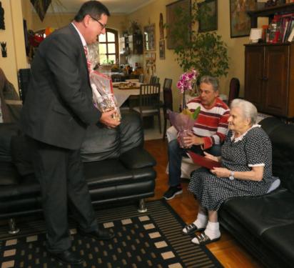 Ismét bővült kerületünk 100 éveseinek tábora. A rendkívüli évforduló alkalmából dr. Csomor Ervin alpolgármester köszöntötte születésnapján Kádár József Imrénét.
