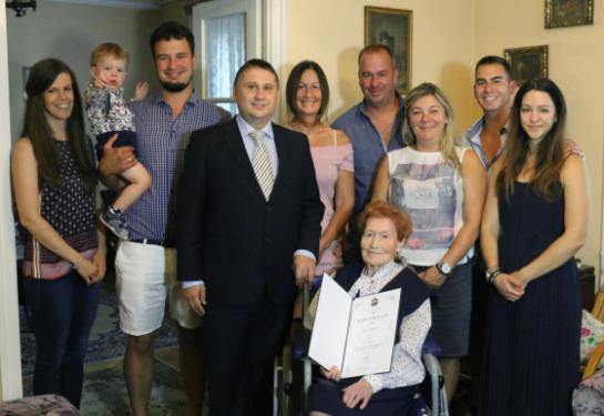A családtagok közül nyolcan is jelen voltak, amikor Kovács Péter polgármester felköszöntötte Lóczi Miklósnét 90. születésnapja alkalmából. Mária néni Jászfelsőszentgyörgyön született és 1947-ben költözött a fővárosba, mert a férje budapesti volt.