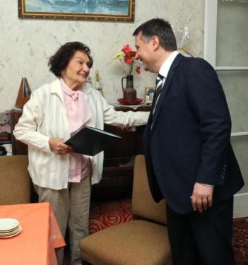 Kovács Péter polgármester köszöntötte 90. születésnapja alkalmából Nagy Ferencnét, aki Mátyásföldön született, és egész életében hűséges maradt hozzá. Iskoláit az egykori Baross Gábor utcai általános iskolában kezdte, majd szülei egy esztergomi zárdába íratták be. Ott azonban annyira nem érezte jól magát, hogy átiratkozott a budapesti Sacre Coeur Sophianum Leánygimnáziumba, az érettségi vizsga után pedig joghallgató lett. Hamar kiderült viszont, hogy az életvidám fiatal lánynak nem valók a paragrafusok és jogszabályok, ezért valami érdekesebb foglalkozás után nézett. A BKK elődjénél, a Budapest Székesfőváros Közlekedési Részvénytársaságánál (Beszkárt) gyors- és gépíró tanfolyamot hirdettek, amit sikeresen el is végezett. Először mégis kalauzként alkalmazták, majd miután nagybátyja javaslatára műszaki rajzot is tanult, megtalálta azt a foglalkozást, amelyben igazán otthon érezte magát. A Beszkárttól került az Ikarus gyárba, ahol egészen nyugdíjazásáig, 55 éves koráig volt az autóbuszüzem megbecsült műszaki rajzolója.