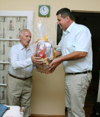Szebegyinszky Istvánnak, aki szintén 90. születésnapját ünnepelte, dr. Csomor Ervin alpolgármester adta át a miniszterelnök üzenetét és az Önkormányzat ajándékcsomagját. Pista bácsi Szarvason született. Kitanulta az ácsmesterséget, és szülőhelyén élt mindaddig, amíg a sorköteles kort elérve, behívták katonának. Komáromban lövésznek képezték ki, egységével Szeged környékén vészelte át a II. világháborút, de közben egy magángazdaságban állatgondozóként is besegített. Ezután visszatérhetett tanult szakmájához, mert az ezredében az építőiparban járatos katonákat kerestek, akikre egy Kiskunmajsán létesítendő laktanya építésénél volt szükség. Ott ismerkedett meg későbbi feleségével, aki a konyhán dolgozott, és mindig megkülönböztetett figyelemmel kísérte a jóképű egyenruhás fiatalember sorsát. 1953-ban mondták ki a boldogító igent, és 1954-ben már meg is érkezett egyetlen gyermekük.