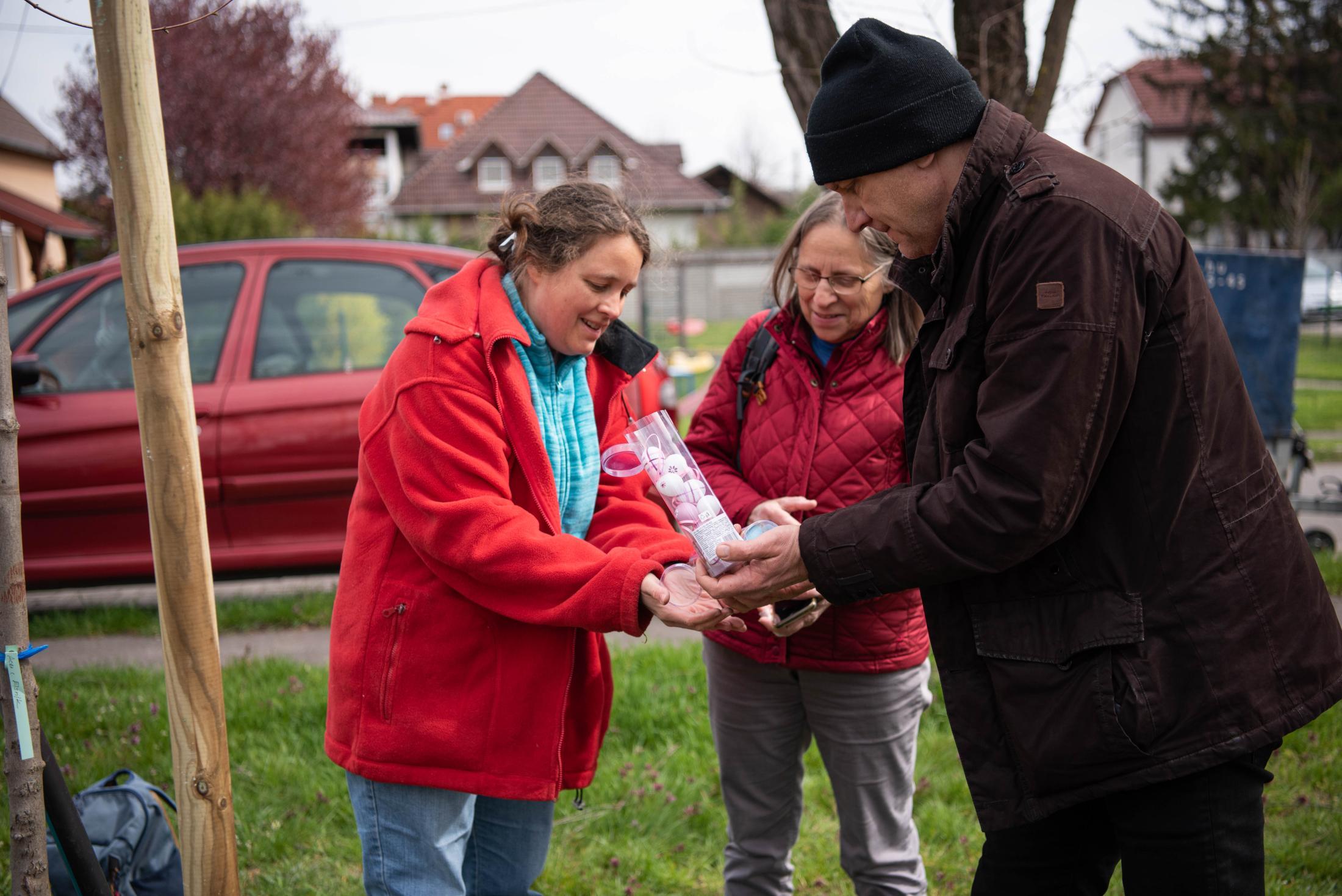 Bár az időjárás nem volt éppen tavaszias, a nagy munkát követően néhány húsvétváró hímes tojás és színes lufi is felkerült a fákra, alpolgármester úr pedig csokitojásokkal köszönte meg a lelkes részvételt. Mint az eddigiekben is, a Kerület Gazda munkatársai természetesen ez alkalommal is nagy segítségére voltak azon családoknak, családtagoknak, akik nem saját kertjükben, udvarukban találtak helyet a kis jövevény tiszteletére ültetett fácskának. Ősszel folytatjuk!