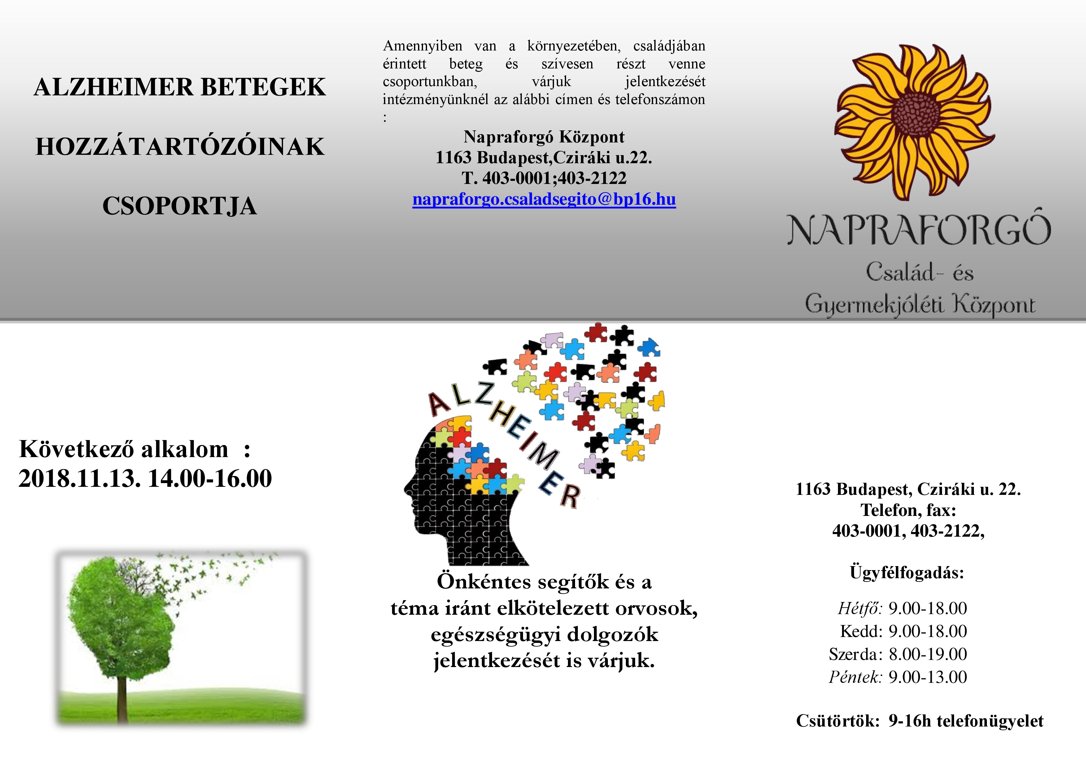 A közvetlen hozzátartozóknak nagyon rossz azt látni, hogy megy tönkre egy agilis ember akivel nap mint nap közelharcot kell folytatni, mit csináljon, mit vegyen fel, ne menjen el otthonról egyedül és még sorolhatnám….! Az egyénnek el kell fogadni a segítséget még akkor is, ha előtte teljesen önállóan élt és gondolkozott, és el kell fogadnia a betegséget ami megváltoztatta.