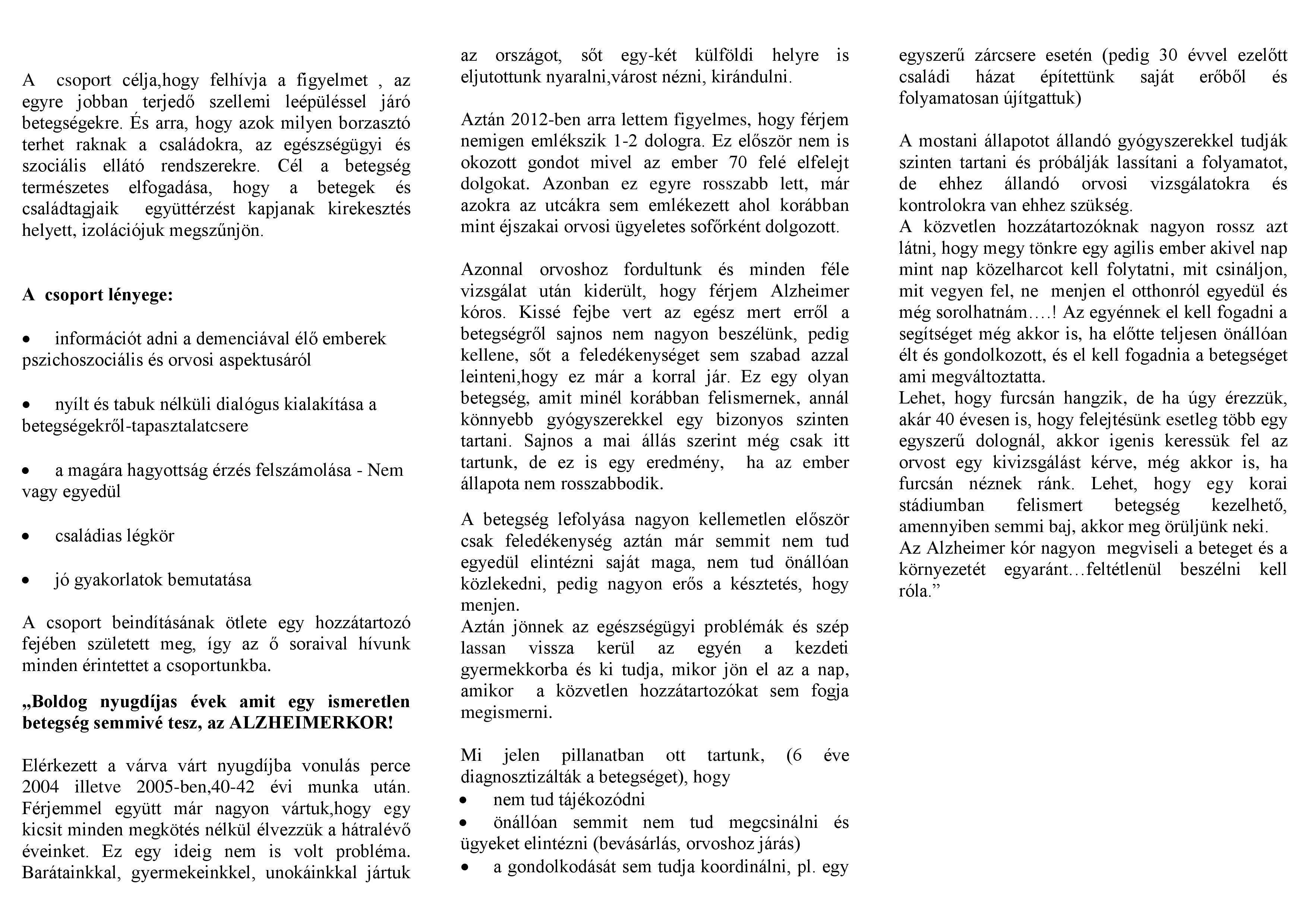 „Boldog nyugdíjas évek amit egy ismeretlen betegség semmivé tesz, az ALZHEIMERKOR!