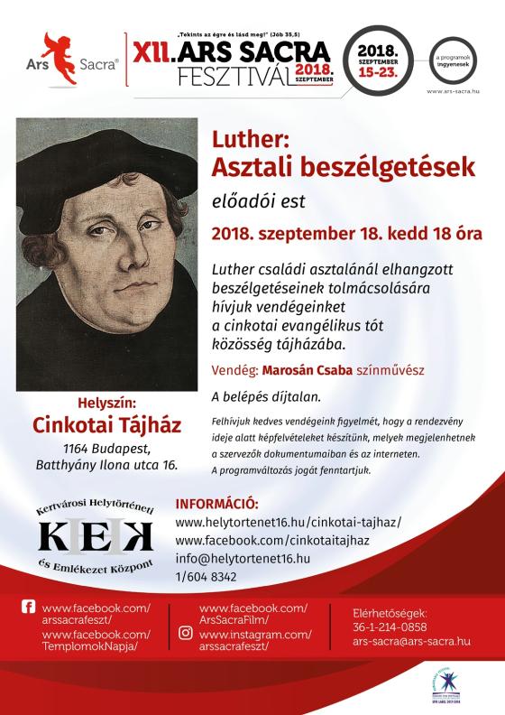 Luther asztali beszélgetések a Cinkotai Tájházban