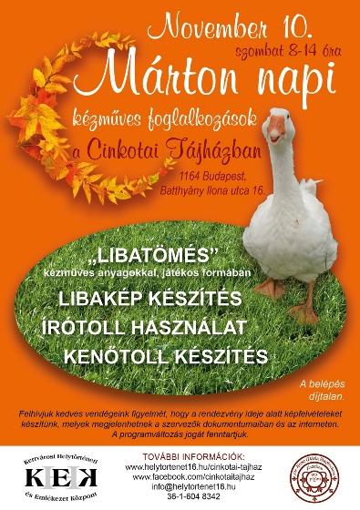 Márton napi kézműves foglalkozások a Cinkotai Tájházban A belépés díjtalan!