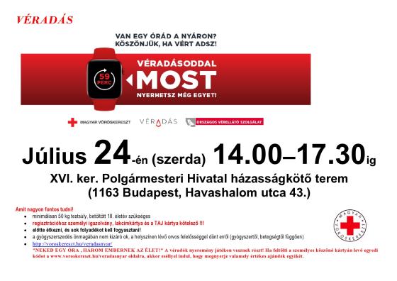 Nyári véradás a XVI. kerületi Önkormányzat épületében